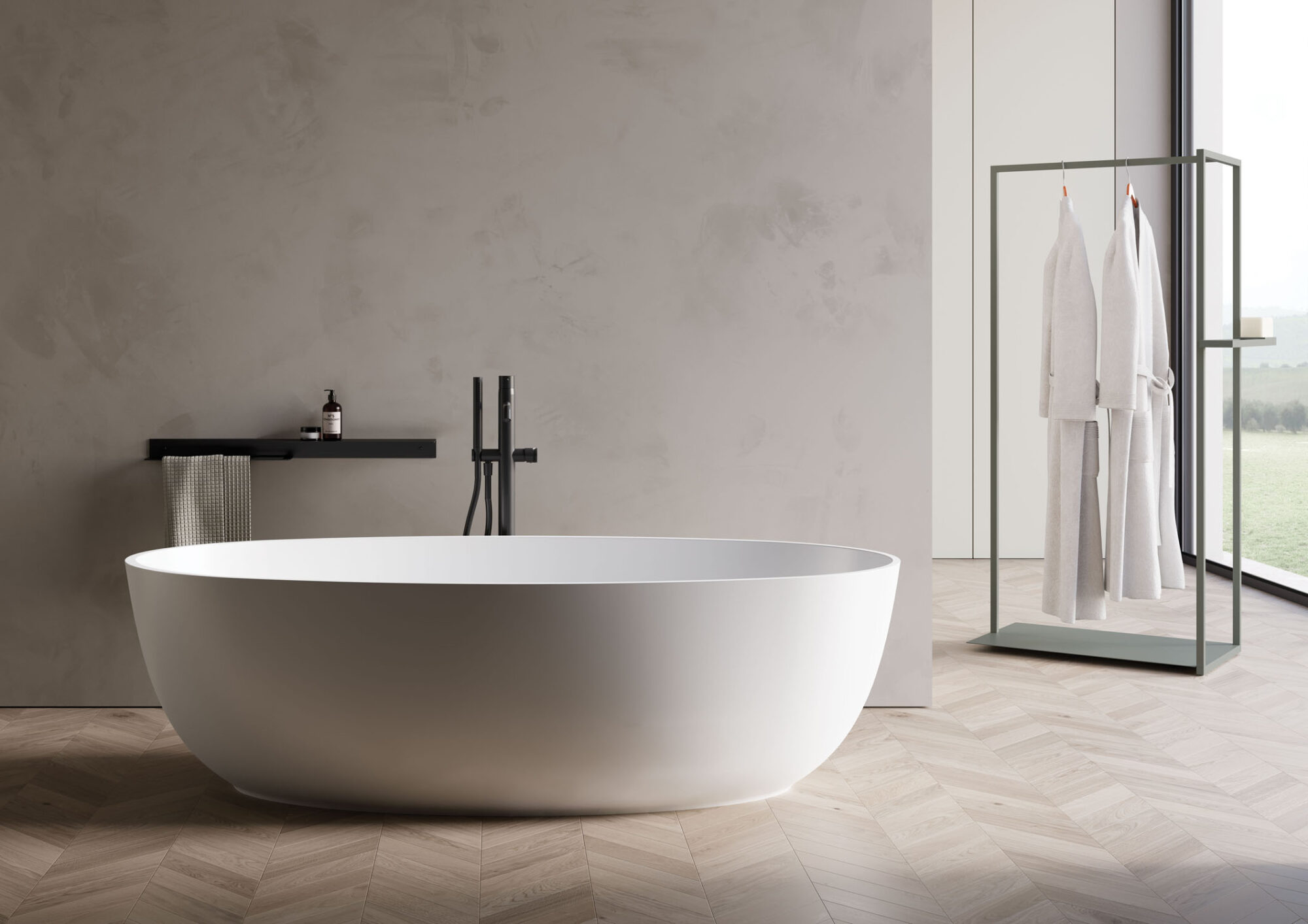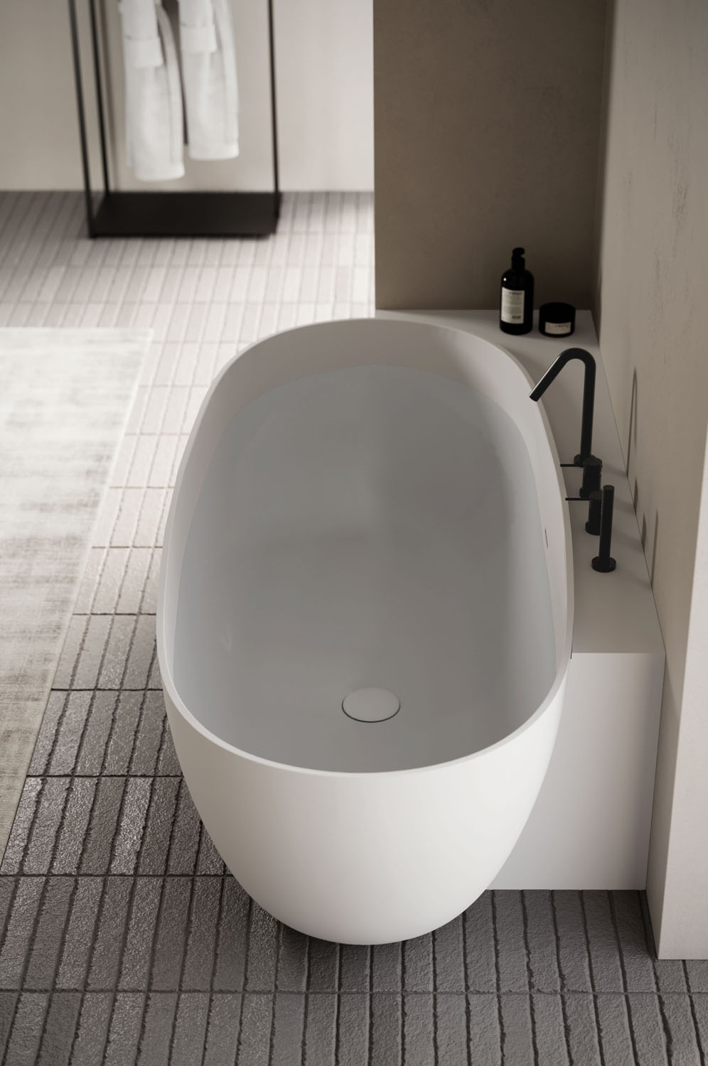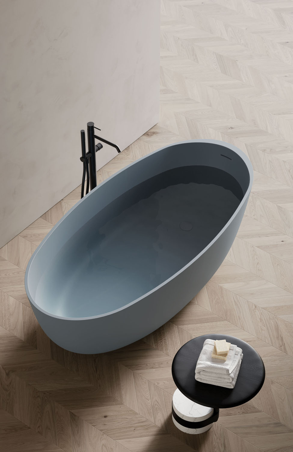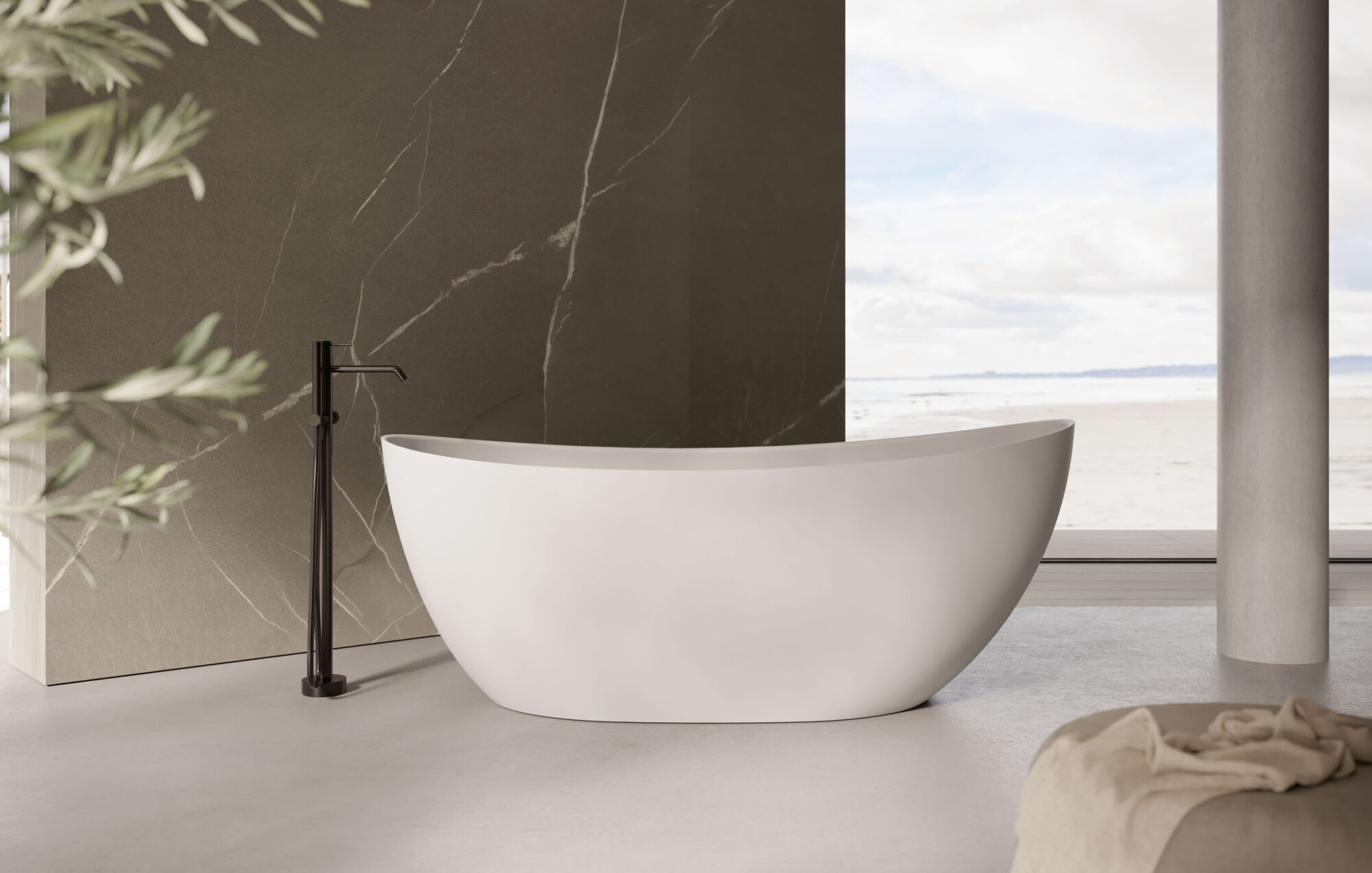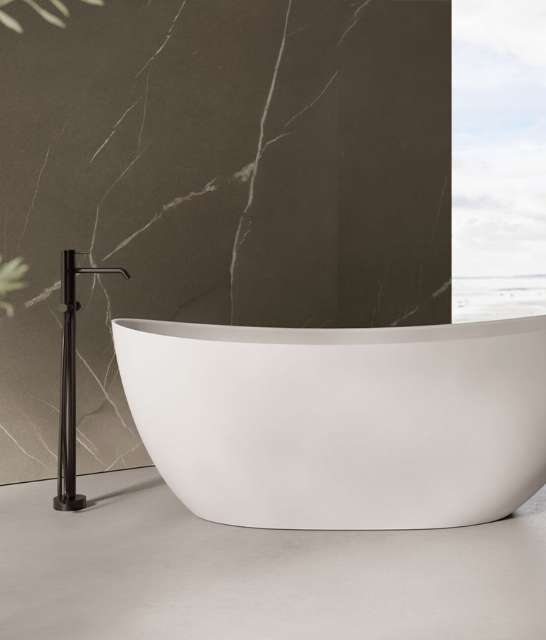 È un materiale con effetto opaco composto da cariche minerali naturali (carbonati di calcio e triidrati di alluminio) e da resine poliesteri rivestito in gelcoat. Il gelcoat è una sostanza a base di resina poliestere-acrilata che rende impermeabile il composito e ne garantisce la resistenza all’acqua e agli agenti aggressivi.