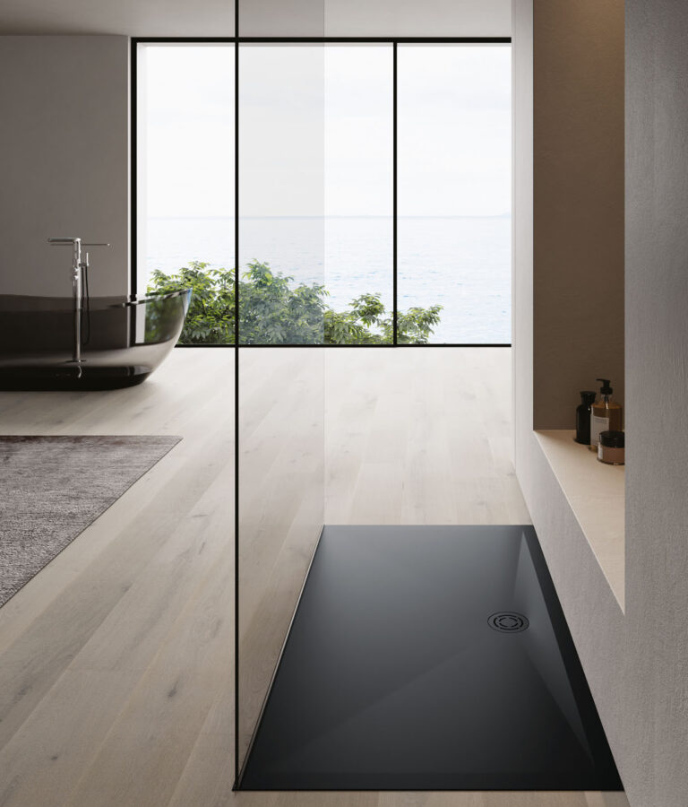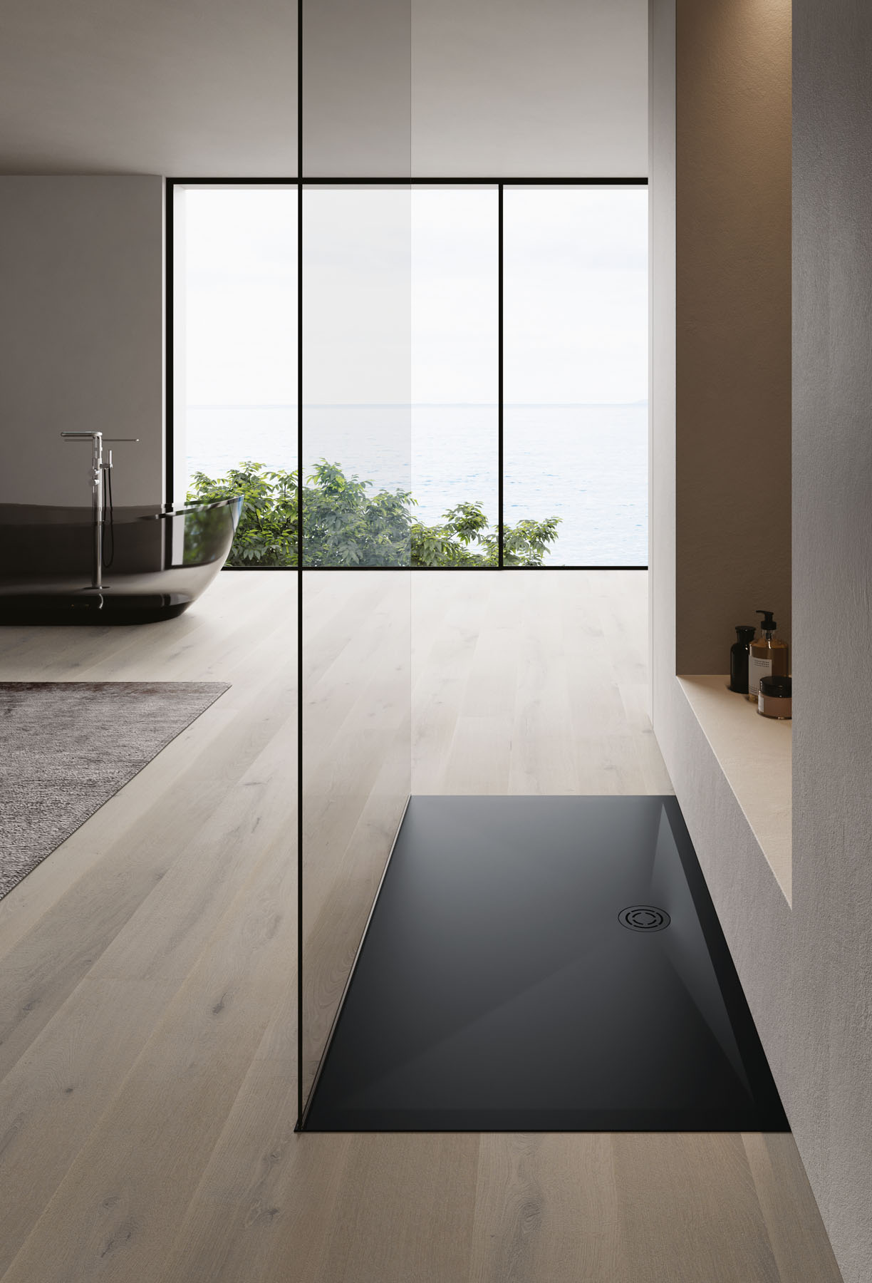 Laminam è una miscela di argille, feldspati e silici. Ha un’elevata resistenza alle sollecitazioni meccaniche, agli attacchi chimici, ai graffi e all’abrasione. La pulizia è estremamente facile e anche se fatta con frequenza non altera la sua superficie. La superficie garantisce la massima igiene perché non permette il proliferare di batteri, muffe o funghi all’interno dell’ambiente bagno.