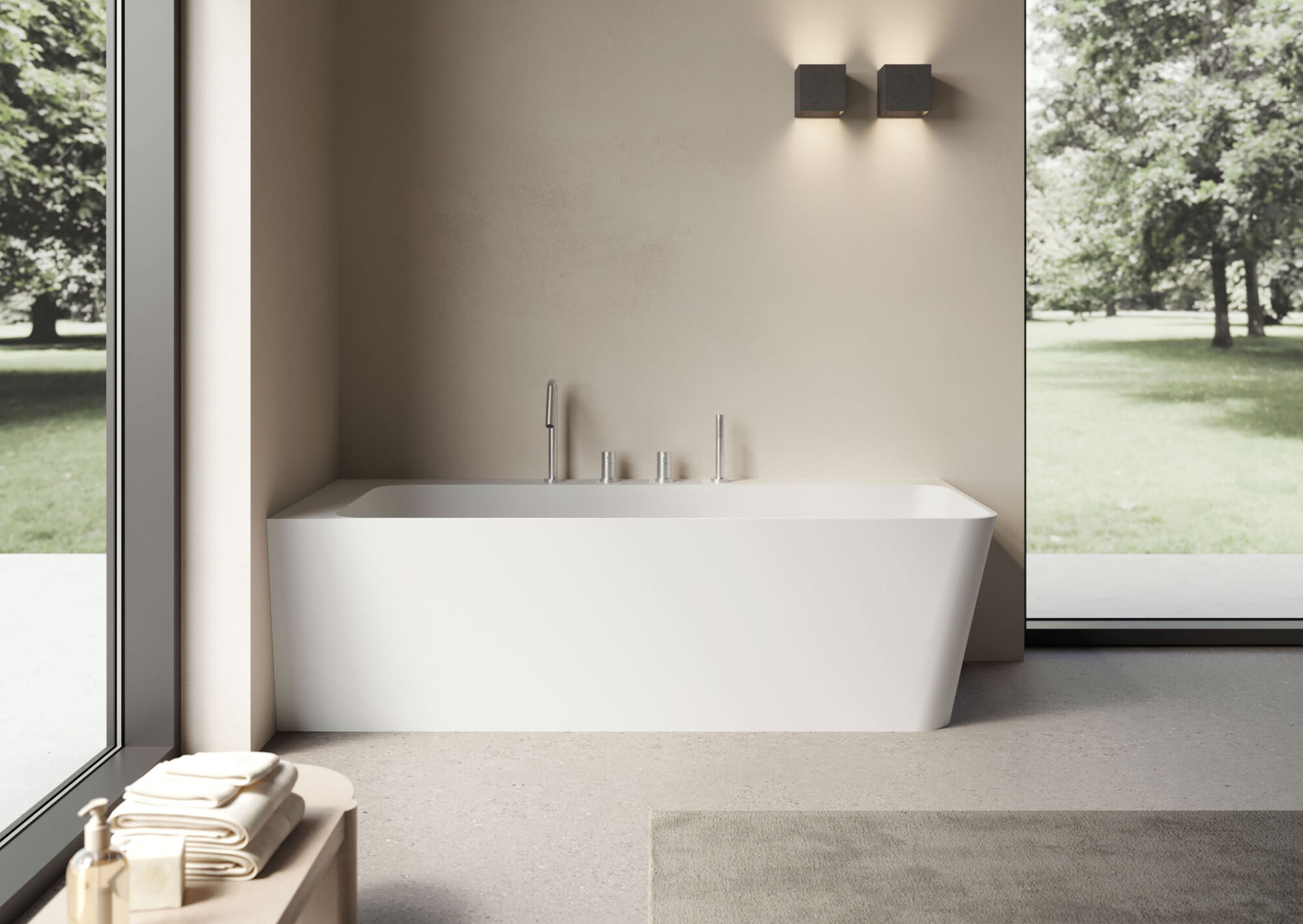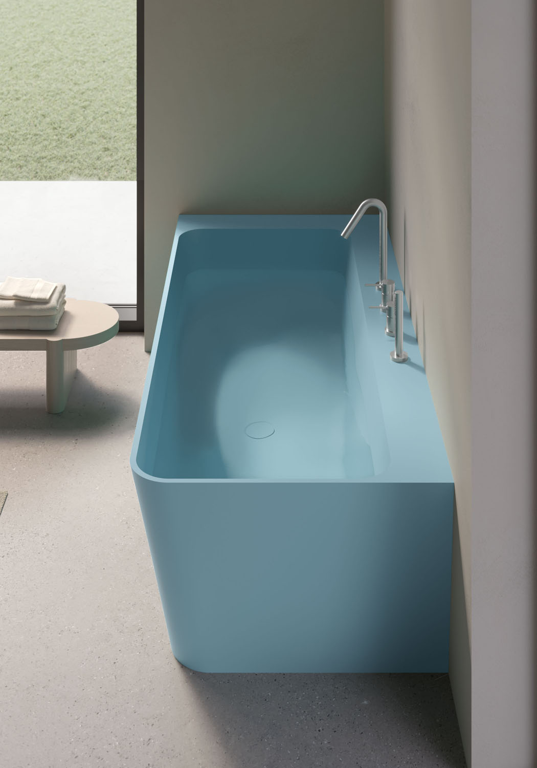Ares è la vasca da bagno, disponibile nella versione freestanding o ad angolo, che celebra nuovi percorsi d’arredo. Realizzata in M-Solid, finitura bianco opaco, esternamente o interamente, può essere verniciata nei colori laccati opachi come da campionario Ideagroup, RAL e NCS. Finitura coperchio piletta in tinta. Senza troppo pieno, versione disponibile con piletta “Up & Down”.