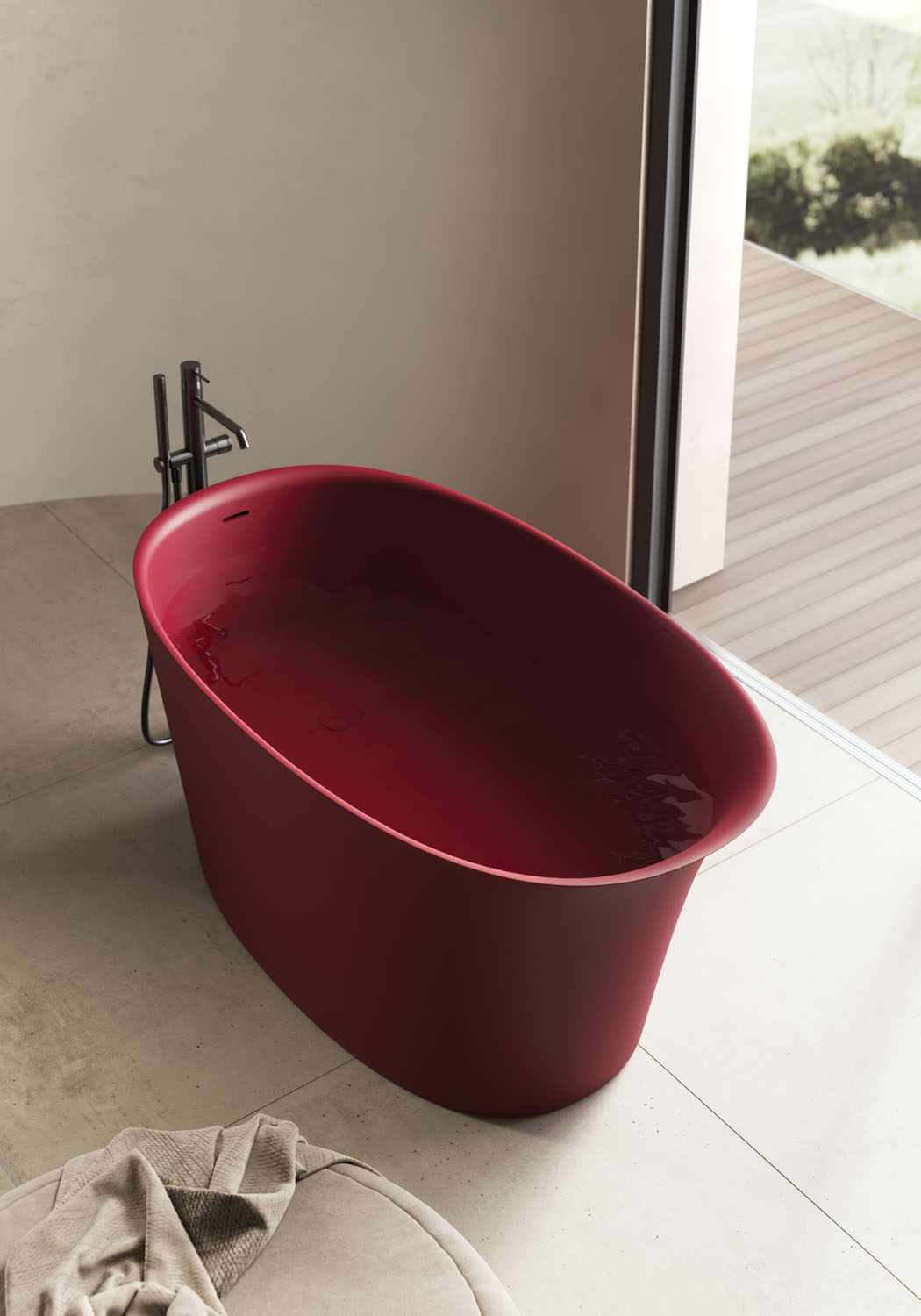 Levante, elegante e ricercata, è la vasca freestanding di ispirazione giapponese. Dalle dimensioni contenute, è disponibile in M-Solid, finitura bianco opaco. Esternamente o interamente, può essere verniciata nei colori laccati opachi come da campionario Ideagroup, RAL e NCS. Finitura coperchio piletta in tinta Bianco opaco. Senza troppo pieno, versione disponibile con piletta “Up & Down”.