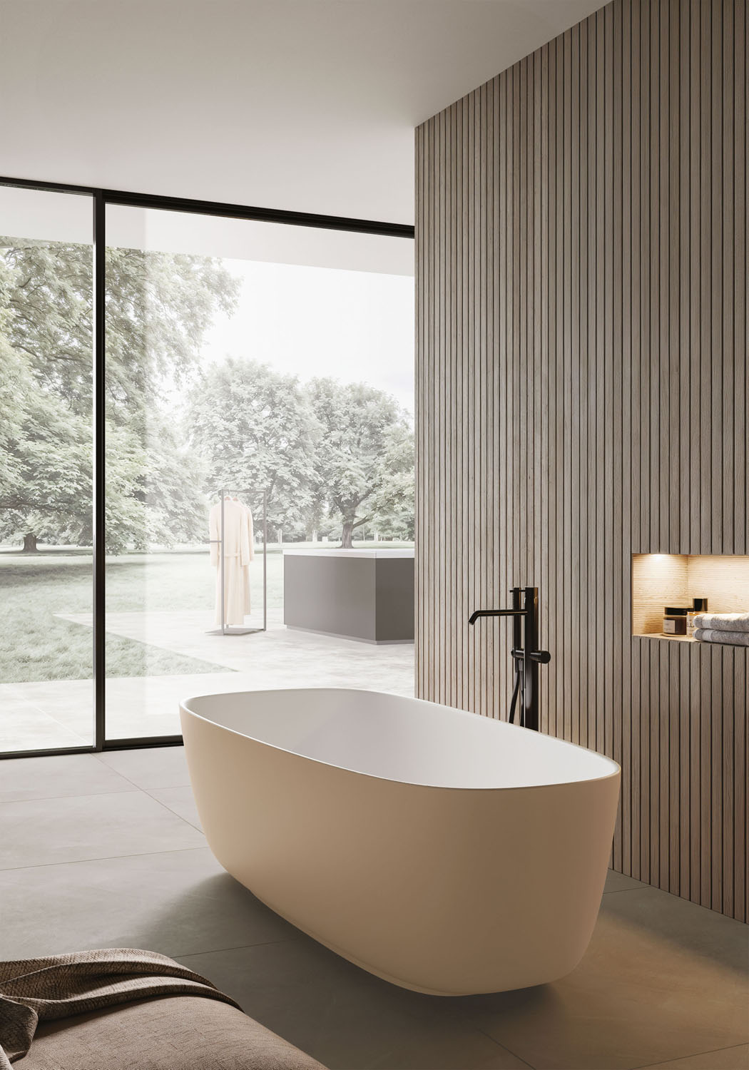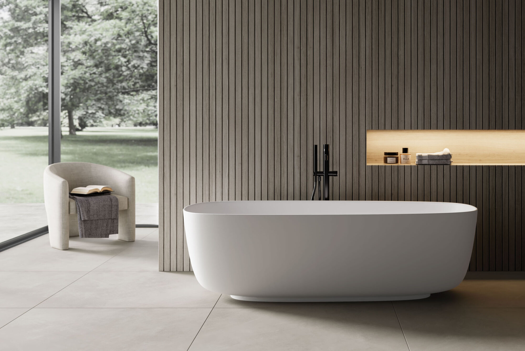 River è la vasca da bagno freestanding dalle forme asimmetriche. Disponibile in Aquatek Light in finitura Bianco opaco, verniciabile internamente ed esternamente nei colori laccati opachi come da campionario Ideagroup, RAL e NCS. “Troppo pieno” integrato nella vasca, finitura coperchio piletta in tinta.