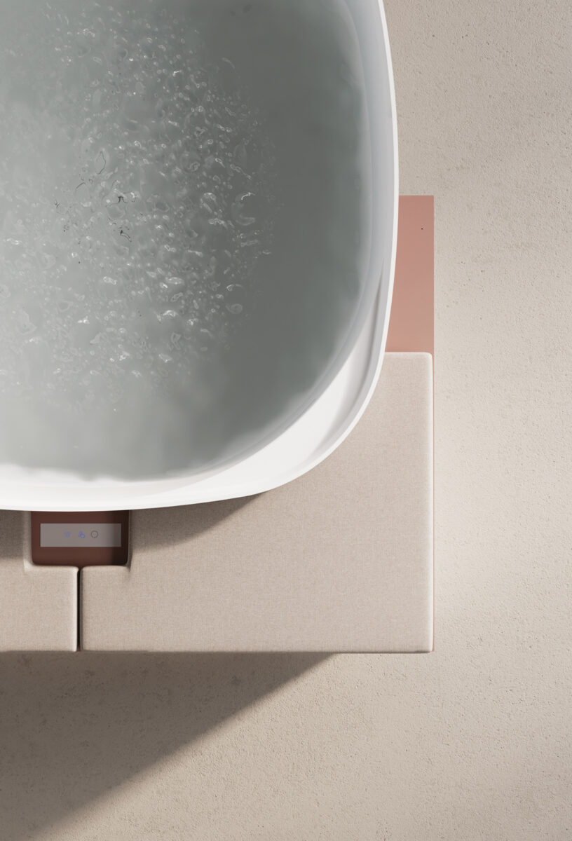 Crafted from Aquatek with a clean, minimalist design, the Fonte airpool bathtub introduces a new standard of relaxation. Its airpool system gently envelops the body in a regenerating massage, and touch-sensitive controls allow for easy management of all functions with a light touch.
