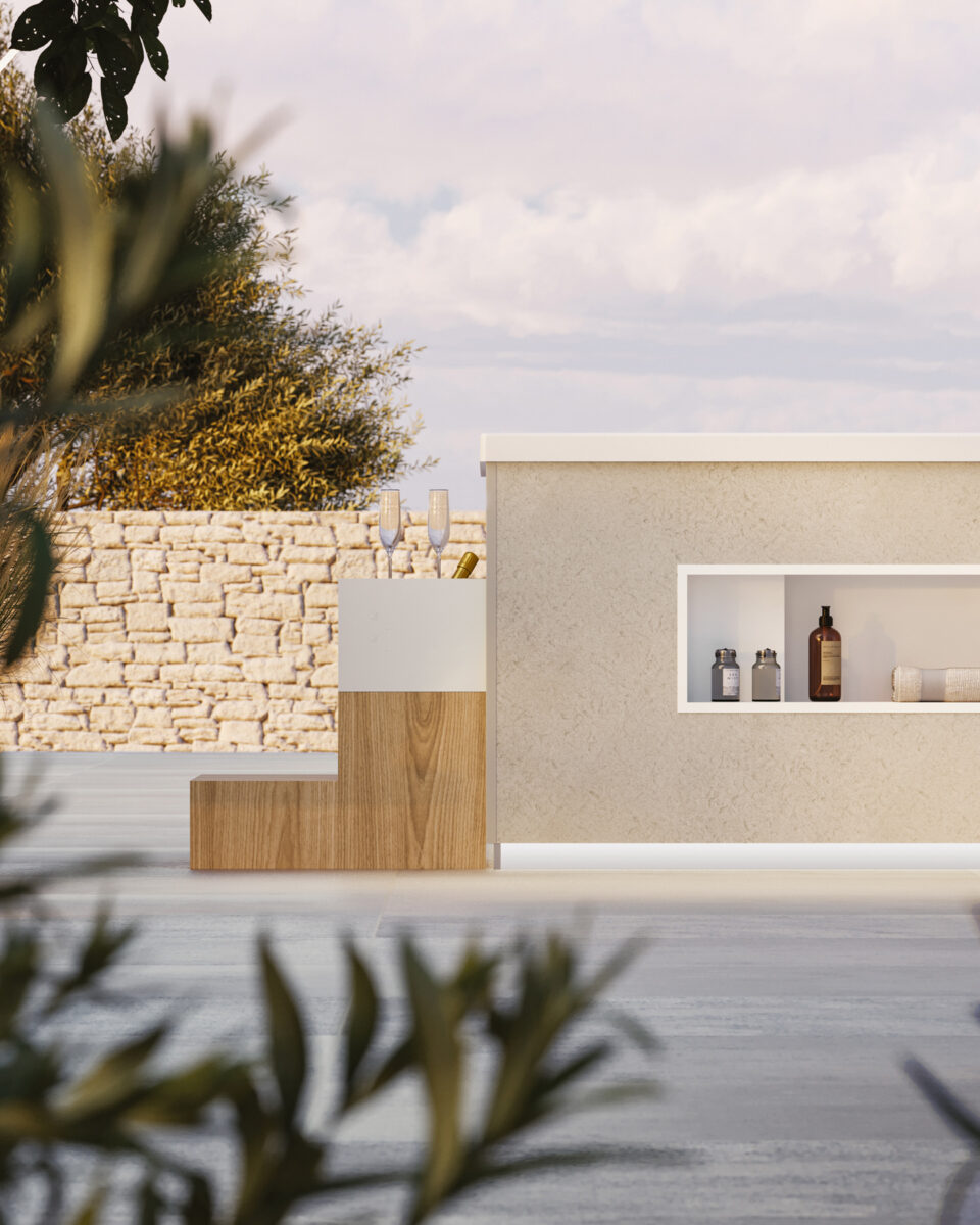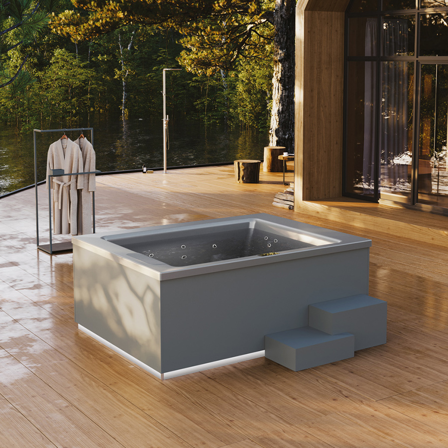 01. Skirting panels made of b.plus Bond composite material are available as an option for all hot tub models. The skirting panels are crafted from two robust aluminium sheets with a resilient techno-polymer core. Coated with the distinctive b.plus finish, these panels boast superior mechanical properties, making them ideal for outdoor installation. Their elegant design complements any architectural style. The panel’s surface contains special pigments that reflect most of the sun’s rays, keeping it cool while maintaining its colour integrity, regardless of the shade. Suitable for all seasons and weather conditions, available in a range of 5 standard finishes: