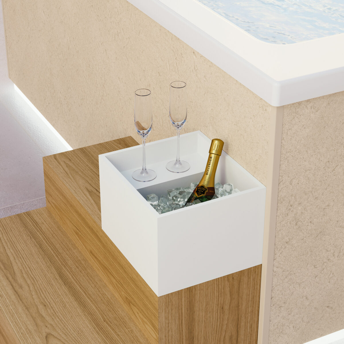 En polymère peint en blanc ou assorti aux couleurs des articles complémentaires d’ameublement (Canapa -Verde Agave – Nero Carbone et Terra).